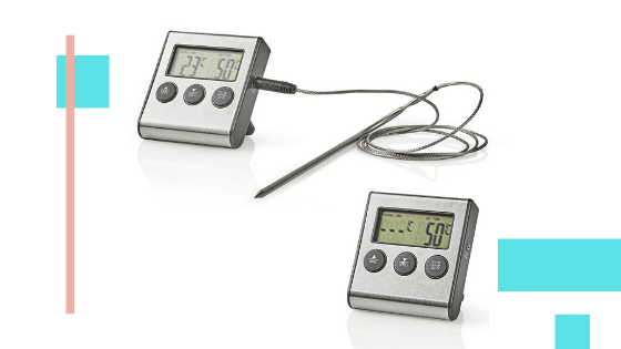 - Thermomètre à viande Nedis : idéal pour les grosses pièces à cuire lentement. Sa sonde se glisse dans la viande, tandis que l’affichage reste à l’extérieur, que ce soit au four, à la poêle ou sur un barbecue. Plus besoin d’ouvrir le four toutes les dix minutes : un simple coup d’œil suffit pour lire la température.